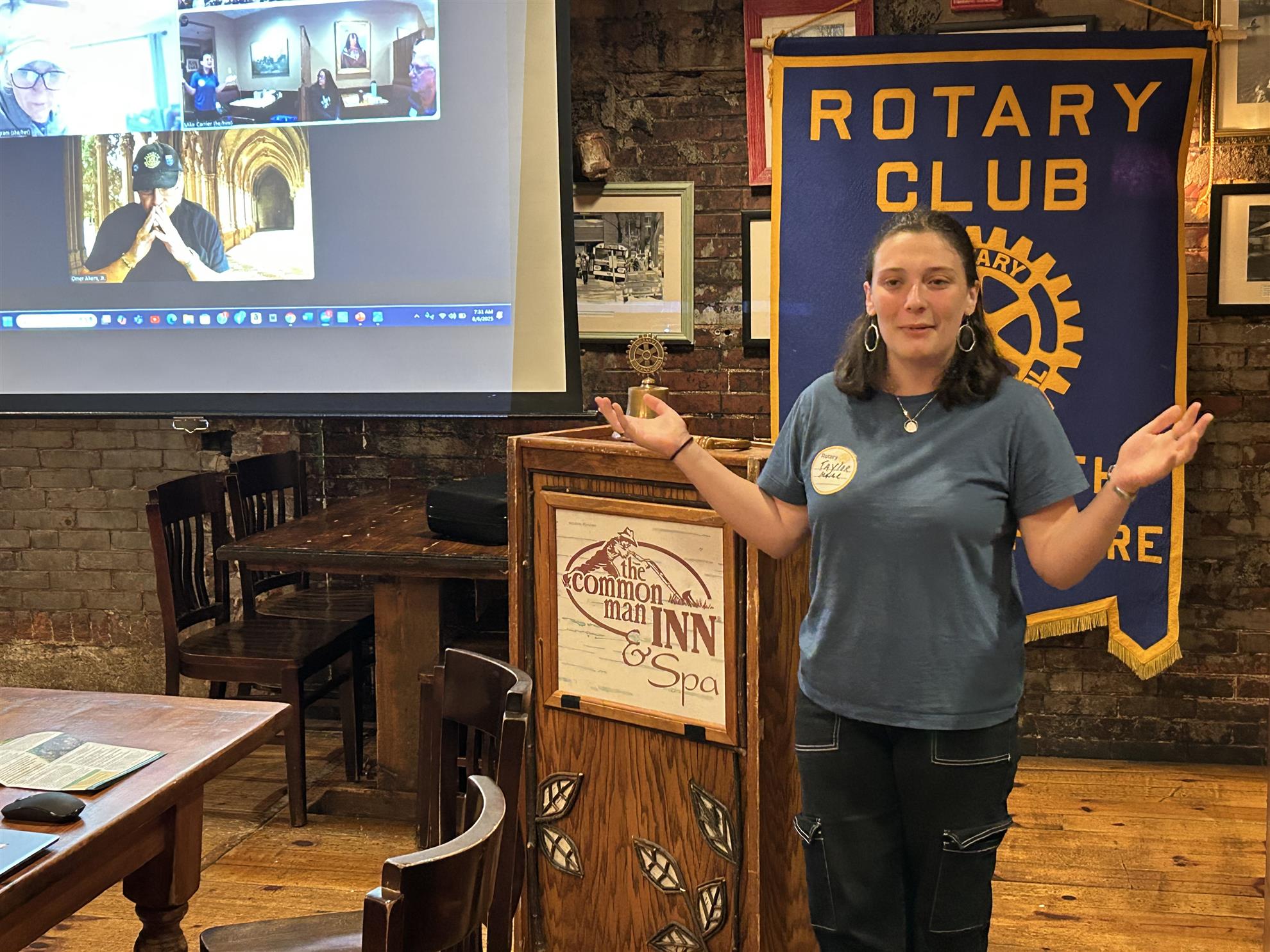 Today’s guests were Taylor Maine, a former speech contest winner, and Matthew Bruce of the Rotary club of Middleborough, Ma.