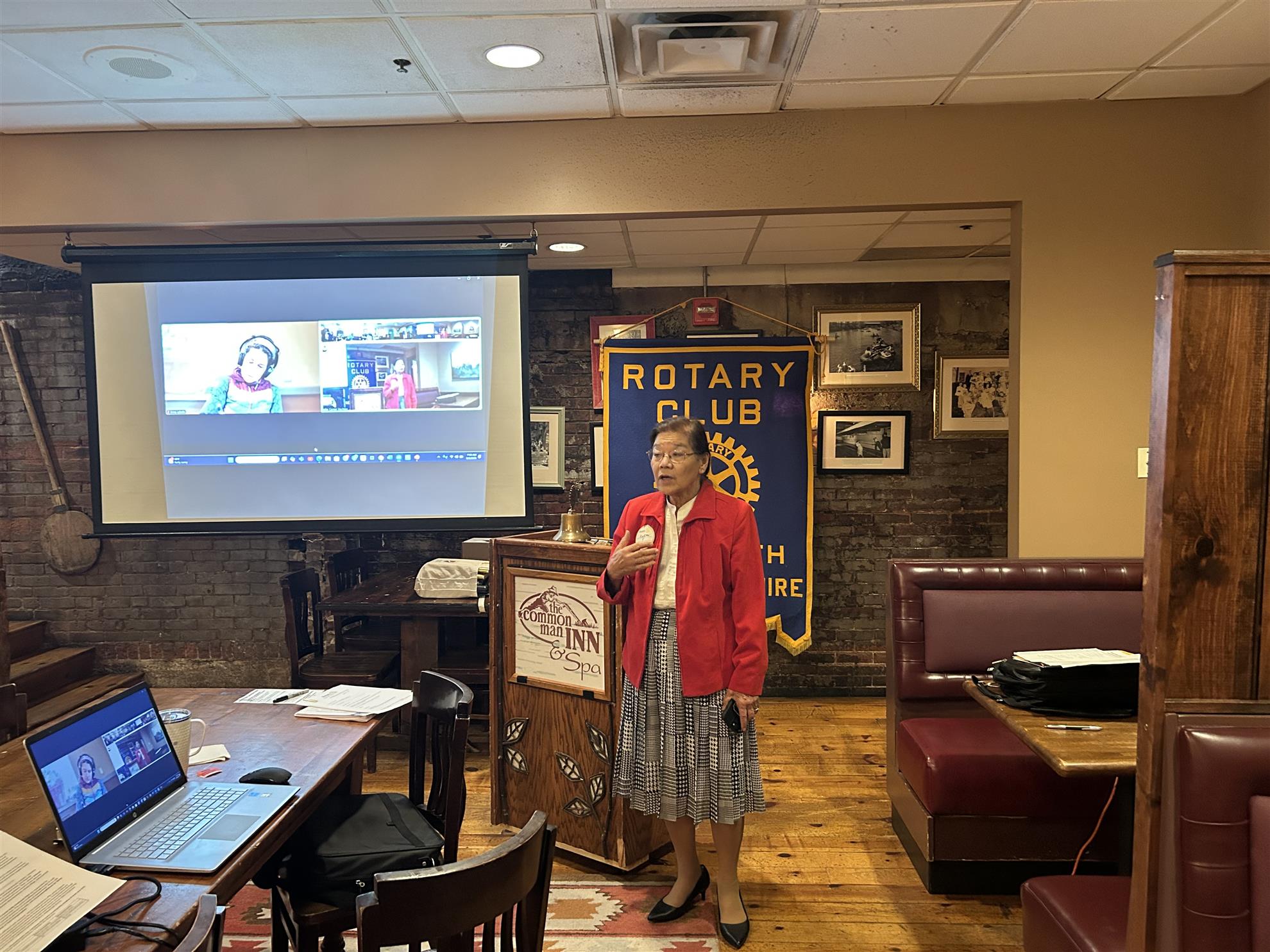 Sharon introduced Karen Testerman, speaking to us today about the New Hampshire Veterans Administration. She noted that we give breaks to veterans in our stores, and honor them in many ways…but we don’t provide them with basic service the way we should. In 2022 the PACT act expanded the health services available to the veterans and included coverage for toxic chemicals.
